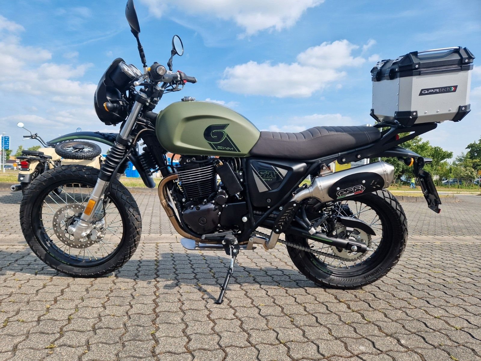 Neue SWM SIX6 500 TRAVELER GPR Auspuff + Alu-Topcase mit 30 PS, sofort lieferbar.
